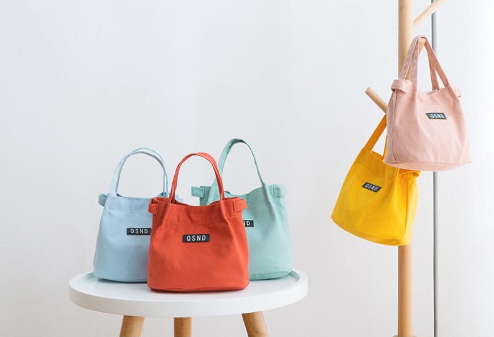 2. กระเป๋าผ้า (Minimal style) มีให้เลือก 6 สี ได้แก่ สีขาว , สีส้มอิฐ , สีฟ้า , สีมิ้น , สีชมพูนู๊ด และ สีเหลือง